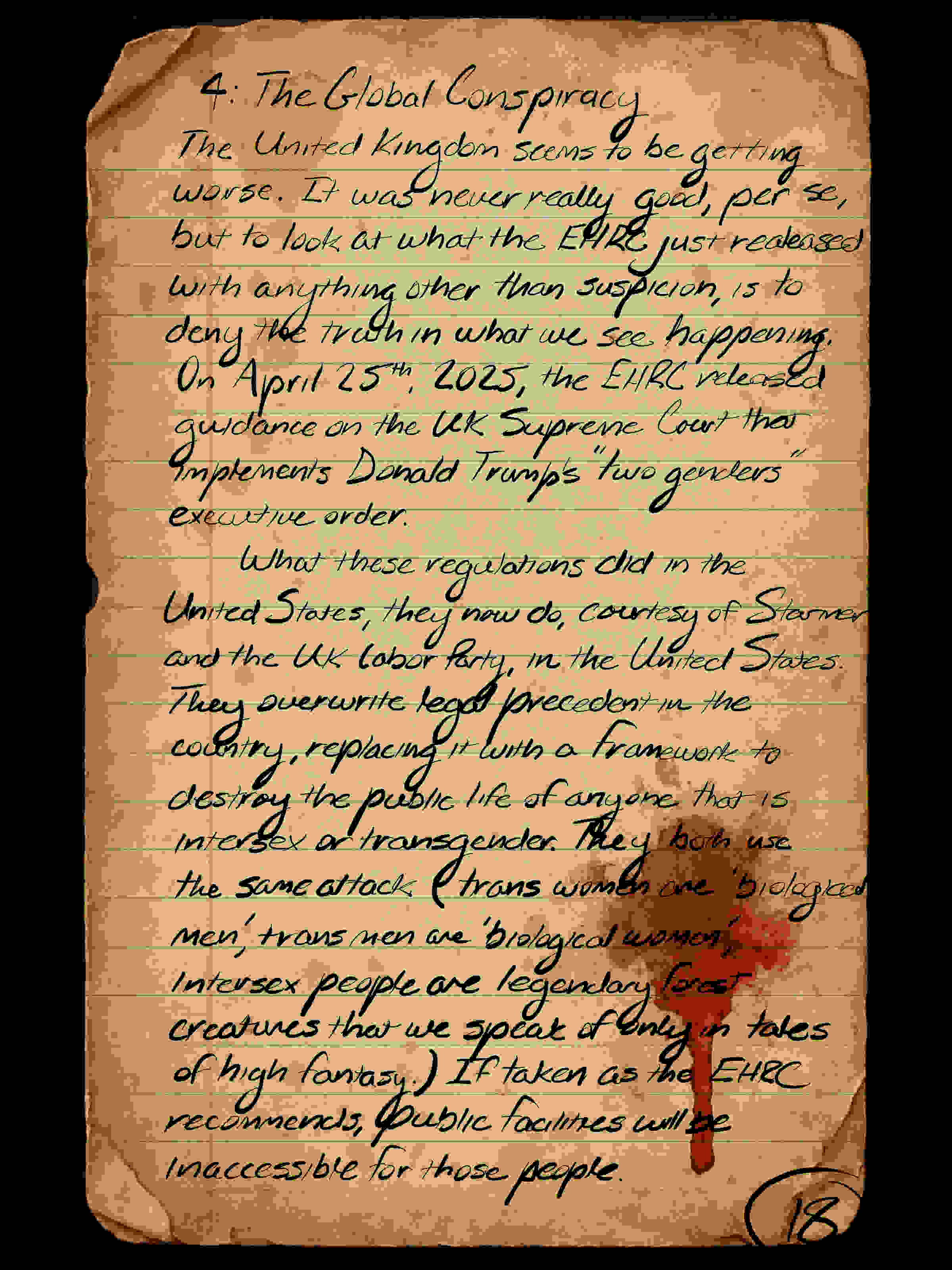 The United Kingdom seems to be getting worse. It was never really good, per se, but to look at what the EHRC just released with anything other than suspicion, is to deny the truth in what we see happening. On April 25th, 2025, the EHRC released guidance on the UK Supreme Court that implements Donald Trump’s “two genders” executive order.